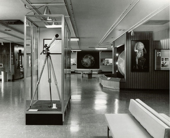 The hall serves as an assembly area for visitors and students who are waiting to attend a show. The Exhibit Hall also contains a gift counter and the main offices used for day-to-day operations of the planetarium.